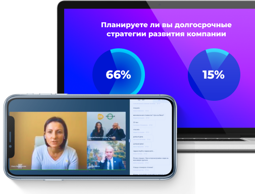 Проведение опросов с демонстрацией результатов в виде диаграмм и графиков в прямом эфире